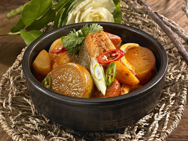 고등어조림에서 주재료인 고등어만큼이나 중요한 재료가 무다. 싱싱한 고등어와 무를 넉넉히 깔아 국물 자박하게 졸여낸 고등어조림은 잘 지은 쌀밥과 함께 먹으면 최상의 어울림을 자랑한다. 먼저 무를 1cm 굵기로 반달 썰기한다. 양파도 같은 굵기로 썰어주고, 대파는 채 썬다. 고등어는 적당한 크기로 잘라 손질한 후, 흐르는 물에 서너 번 씻어준다. 양념은 간장 3큰술, 액젓 1큰술, 고춧가루 3큰술, 설탕 1큰술, 맛술 2큰술, 다진 마늘 1큰술을 넣고 골고루 섞어준다. 냄비에 다시마와 무를 넣고 물을 부어 살짝 조려준다. 무가 반 정도 익으면 고등어와 양념장을 넣고 센 불로 끓인다. 팔팔 끓어오르면 중불로 줄여 10분 정도 더 끓인다. 양파와 대파를 넣고 2분 정도 더 끓여 완성한다.