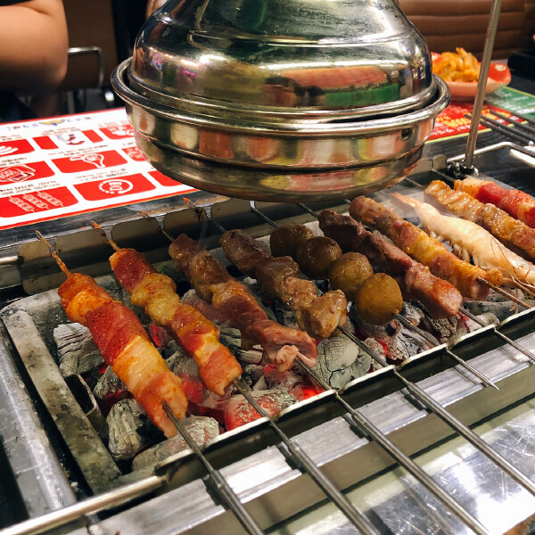 양꼬치를 무한으로 먹을 수 있다니 그야말로 양꼬치 마니아에게는 천국과 같은 곳이다. 양꼬치 외에도 굉장히 많은 메뉴가 있어 결정 장애가 있는 사람이라면 메뉴 고르는 데 한참이 걸릴지도 모른다. 일단 1인 기준 13,000원의 양꼬치 무제한 메뉴를 주문하면 양, 돼지, 소, 새우, 마라 완자 꼬치가 나오고 숯불 위에 올리면 자동으로 돌아가기 때문에 잘 구워지기를 기다리면 된다. 쯔란을 듬뿍 묻힌 양꼬치 한 점과 빠져서는 안 될 찡따오 한 잔 들이켜면 피곤이 싹 풀리는 듯하다.