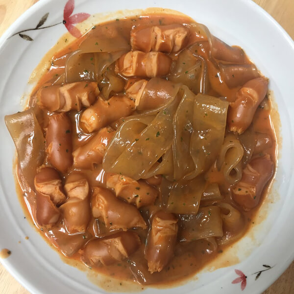 까르보나라 소스와 불닭볶음면이 만나 매콤하면서도 고소한 매력으로 사랑받고 있는 불닭 까르보나라 레시피. 이미 숱하게 화제가 된 레시피로 평소 불닭볶음면을 좋아하는 사람들이면 한 번쯤 먹어봤을 메뉴다. 여기서 한 단계 더 나아가 중국당면을 사용하면 색다른 조합으로 이색적인 파스타를 즐길 수 있다. 여기에 톡하고 터지는 비엔나소시지까지 곁들이면 금상첨화가 따로 없다.
