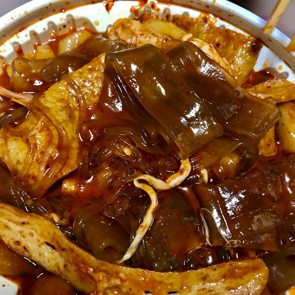 가장 많이 알려진 중국당면 활용 메뉴다. 수많은 엽떡중독자를 낳은 엽기떡볶이에 중국당면을 넣은 레시피로, 해당 음식을 검색하면 수백여 개의 해시태그 수를 자랑한다. 중국당면에 매운 엽기떡볶이 소스가 깊게 배어들어 당면만 먹어도 맛있을 뿐만 아니라 쫄깃쫄깃한 식감이 떡보다 더 매력적인 중독성을 자랑한다. 불린 중국당면을 엽기떡볶이에 그대로 넣어 먹어도 좋지만, 팬에 한번 빠르게 볶아주면 양념이 깊게 배어들어 더욱 맛있게 즐길 수 있다.