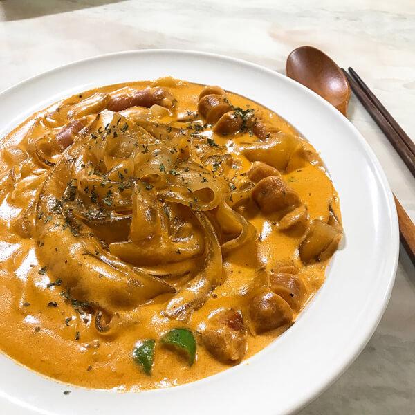 중국당면은 파스타면처럼 다양한 파스타 소스와 곁들여 즐길 수 있다. 앞서 말했듯 면이 넓적하기 때문에 크림종류의 파스타와 찰떡궁합을 자랑하는데, 토마토소스와 크림소스를 섞은 로제소스를 활용해도 잘 어울린다. 여기에 치즈나 소시지 등 다양한 재료를 곁들이면 더욱 풍성하게 즐길 수 있으니 평소 파스타를 즐겨 먹는다면 한번 먹어보길 추천한다.