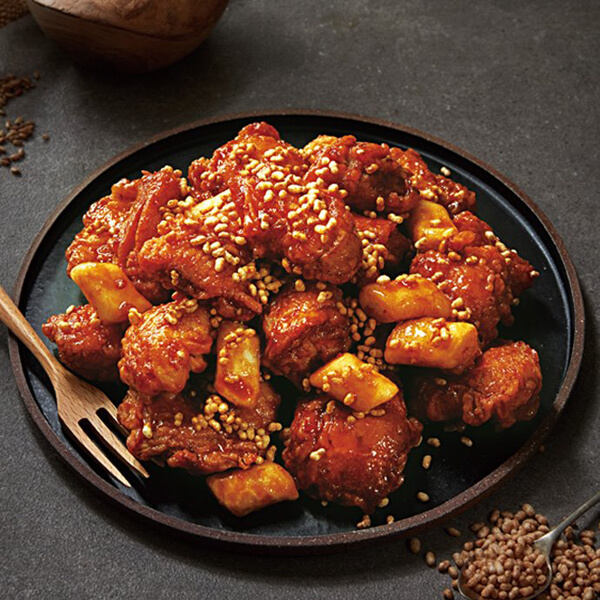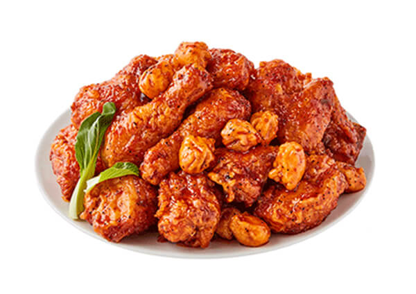 BBQ치킨의 효자 노릇을 톡톡히 해내고 있는 ‘써프라이드 치킨’. 후라이드 치킨과 양념치킨을 조합해 크런치 토핑을 올린 신개념 치킨으로, 양파와 간장 베이스의 자포네 소스로 맛을 내고 콘시리얼, 양파, 마늘이 들어간 후레이크를 뿌려 아삭하게 씹히는 식감이 특이점이다. 고소한 버터의 풍미도 느낄 수 있으며, 달콤하면서도 짭조름하니 단짠단짠 매력의 정석을 느낄 수 있다.