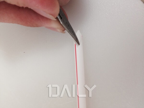 세면대가 막히는 가장 큰 원인은 바로 머리카락 때문이다. 구부러져 있는 세면대 배수관의 구조상 머리카락이 쌓이게 되면 막혀서 물이 내려가지 않는데 이 머리카락만 제거해줘도 금세 고칠 수 있다. 저렴한 가격의 세면대 배수관 뚫는 도구들이 판매되고 있지만 미처 사다 놓은 게 없다면 긴 빨대를 이용해 보도록 하자. 먼저 꾹꾹 눌러 빨대를 평평하게 만들어 주고 가위를 이용해 사선으로 칼집을 내준다. 이때 포인트는 완전히 자르는 것이 아니라 칼집만 내어 뾰족뾰족하게 만들어주는 것이다. 세면대에 뺏다 넣었다 반복해주면 머리카락과 함께 이물질이 쉽게 걸러진다.