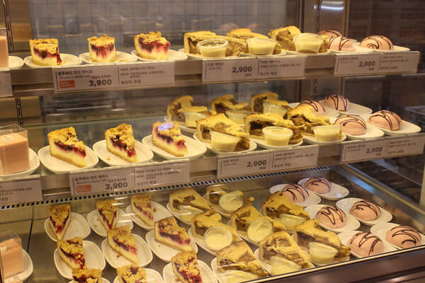 가장 먼저 보이는 쇼케이스 안에는 치즈케이크, 티라미수, 쿠키 케이크 등 다양한 디저트류를 준비되어 있다. 2,900원에서부터 4,900원까지 가성비 좋은 가격으로 준비되어 있으니 하나쯤 먹어봐도 좋을 듯.