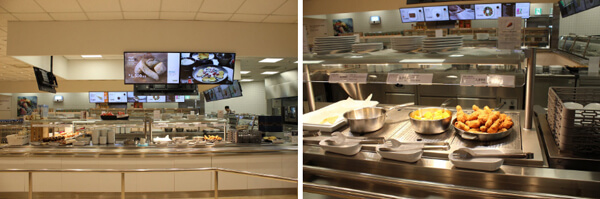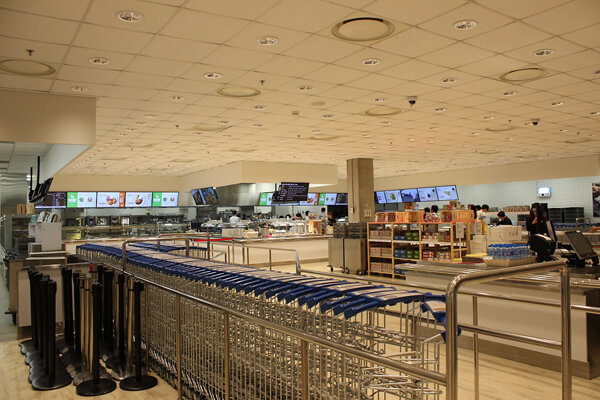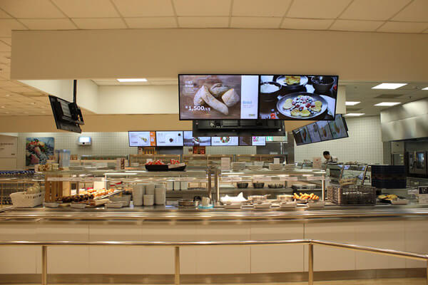 마치 대학교 구내식당을 연상케 하는 심플한 인테리어는 빠르고 편리하게 식사를 구매할 수 있도록 배치되어 있다.