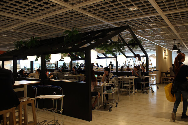 '금강산도 식후경'이라는 말이 있듯이 푸드코트는 쇼핑에서 빼놓을 수 없는 묘미다. 쇼룸을 구경하다 보면 지치고 배가 고파질 수밖에 없는데, 쇼룸 매장 끝에 자연스럽게 이케아 푸드코트가 마련되어 있다. 메인 메뉴부터 간단한 베이커리까지 다양하게 준비되어 있으니 이곳에서 잠시 휴식을 취하는 사람들이 많다. 또한, 쾌적하고 여유로운 환경에서 식사할 수 있도록 푸드코트 입구에는 장바구니를 보관할 수 있는 공간이 있어 짐을 두고 편하게 식사를 즐길 수 있다.