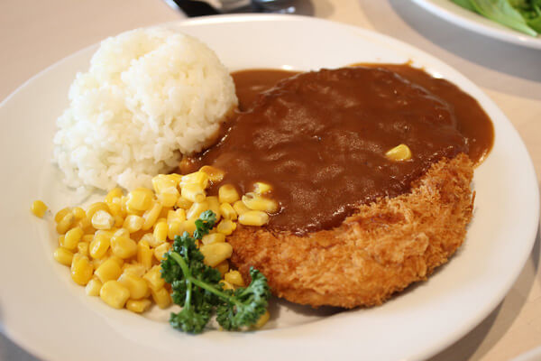 무난하게 즐기기 좋은 등심 돈가스. 적당한 두께의 돈가스와 밥 그리고 옥수수콘으로 구성돼 심플하다.