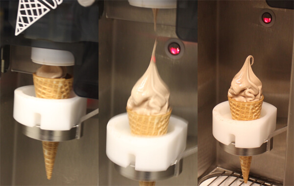 틀에 콘과자를 꽂고 버튼만 누르면 자동으로 만들어지는 아이스크림 |