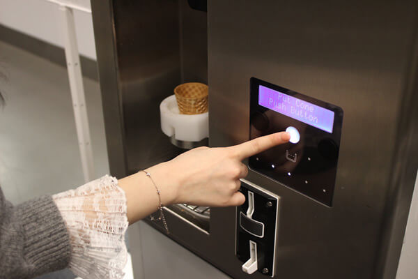 아이스크림을 주문하면 귀여운 코인 한 개를 제공하는데, 옆에 놓인 아이스크림 기계에 코인을 넣고 콘과자를 꽂아 버튼만 누르면 자동으로 아이스크림을 만들어준다.