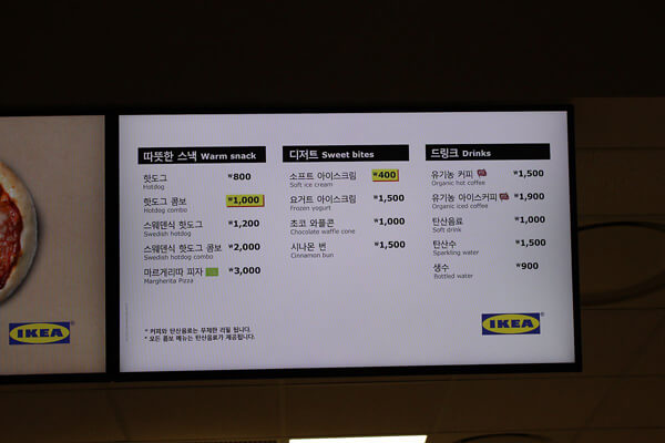 이케아 푸드코트는 일반 쇼핑몰 푸드코트에 비해 저렴한 가격대로 즐길 수 있는 것이 가장 큰 장점이다. 제공하는 양에 알맞은 가격대로 가성비 좋게 제공해 부담이 없고, 식사 메뉴부터 치킨, 브레드, 디저트 등 다양한 메뉴를 제공해 선택의 폭이 넓다.