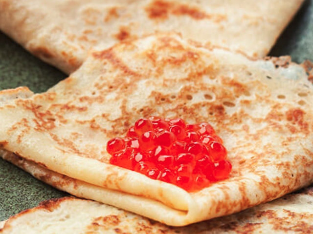 유럽의 크레페 또는 우리나라의 밀전병을 연상케 하는 '블리니'는 러시아식 팬케이크다. 메밀가루와 밀가루를 혼합하여 만든 밀전병에 사워크림인 스메타나를 올리고 연어알 또는 캐비어 곁들여 먹는다. 돌돌 말아 먹기도 하고, 크레페처럼 치즈나 과일을 넣고 부채꼴 모양으로 접어 먹기도 한다. 슬라이스한 연어를 올려 식사 대용으로 즐기거나 소나 양 등의 젖을 발효시킨 케피어를 곁들여 디저트로 즐기기도 한다.