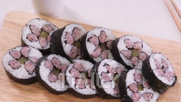 보기만 해도 미소가 피어오르는 스마일 김밥은 만들기도 쉽다. 프랑크 소시지를 끓는 물에서 가볍게 데친 후 반으로 길게 잘라 준다. 2등분 한 김에 밥은 절반 정도만 얇게 펴 준 다음 소시지 밑면이 밥과 닿게끔 올려 돌돌 잘 말아준다. 한입에 먹을 수 있게 얇게 썰어 검정깨를 콕콕 2개 찍어서 눈을 만들어준다. 여기에 케첩으로 연지 곤지까지 만들어주면 귀여운 스마일 김밥이 완성된다.