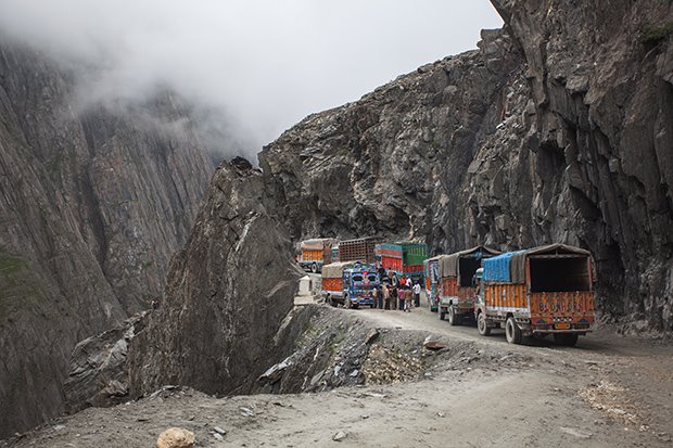 파키스탄의 낭가 팔벳 도로는 세계에서 9번째로 높은 산에 위치한 길로, 심지어 비포장도로이다. 무너진 산비탈을 따라 만들어져 있으며, 자갈길이기 때문에 자칫하면 바로 낙상할 위험이 있다. 따라서 시속 10km를 넘지 못하며, 정해진 시간에만 운행이 가능하고, 일방통행이 정해져 있다.
