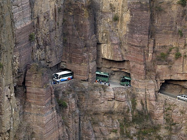 중국 허난성 태행산의 구오리앙 터널 도로는 구오리앙의 농부 13명이 나서서 1972년부터 1977년까지 손수 바위 절벽을 통하는 길을 손수 건설한 곳이다. 그렇기에 안정성 면에서 위험한 곳으로, 천장이 울퉁불퉁하여 높낮이가 일정하지 않고 벽도 고르지 못하다.