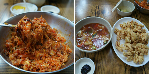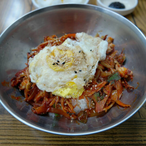 주문하면 달걀 프라이를 올린 중화비빔밥을 내어준다. 오징어, 고기, 양파, 호박을 고추장 베이스 양념에 볶아내 불 맛을 살린 요리로, 포인트는 아삭한 숙주나물. 먹다 보면 비빔밥과 비슷하다고 생각할 수도 있지만, 중화요리 특유의 불 맛과 끈적함이 있는 재료의 차이가 있다. 그 끈적한 소스의 맛이 타의 추종을 불허한다고. 비빔밥에 계란탕을 함께 내어주는데, 얼얼해진 입안을 달래기에는 계란탕이 제격이다.