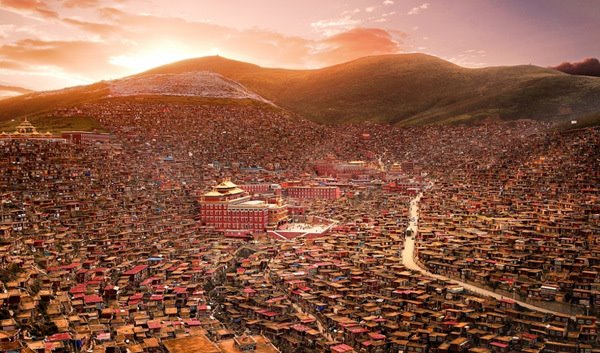 중국 내 티베트인 집단 거주 지역인 스촨성 서북부 해발 3800m 고지에 위치한 세계 최대의 불교학원인 라룽가르 사원 주변에는 7,000여 명의 스님들이 공부하고 수행하는 스님들의 거주지로 가득하다. 한때 전 세계에서 약 3만 7천 명의 수행 승려들이 몰려들어 1만여 채의 쪽방들이 닥지닥지 붙어있는 거대한 사원 도시로 성장한 곳으로, 붉은색 지붕, 붉은 벽의 집들이 빼곡히 들어서 있어 장관을 이룬다.