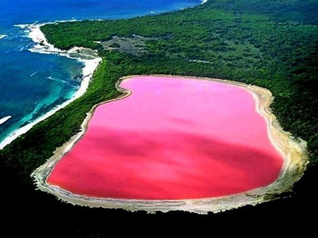 핑크 호수로 가장 유명한 곳은 바로 호주의 힐러 호수다. 서호주 미들 섬에 위치한 힐러 호수는 영락없이 '딸기 우유' 호수인데, 염분이 높아 정작 매우 소량만 맛을 보아도 매우 짜다고 한다. 이곳도 사해처럼 사람의 몸이 물에 둥둥 뜨는 곳인 셈. 600m의 작은 호수이지만 진한 분홍빛 때문에 많은 관광객들이 찾고 있다.