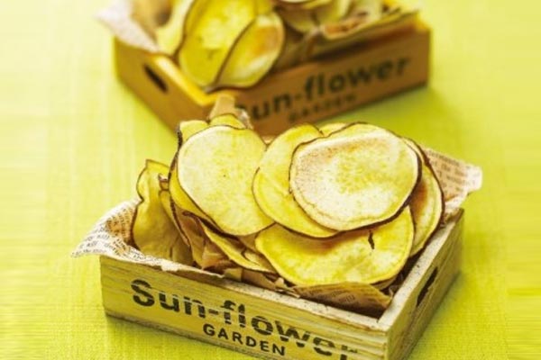 얇게 썬 고구마를 버터를 바른 오븐에 얇게 펼쳐 굽기만 하면 되는 고구마칩은 어린아이들 간식으로도 좋고 입이 심심할 때 간단한 주전부리로 먹어도 좋다. 그냥 먹어도 달콤하고 맛있지만, 레몬즙과 꿀을 섞은 허니버터 소스를 곁들여 먹으면 더욱 맛있다. 오븐이 없는 경우에는 프라이팬에 약한 불로 바삭하게 구워도 된다.