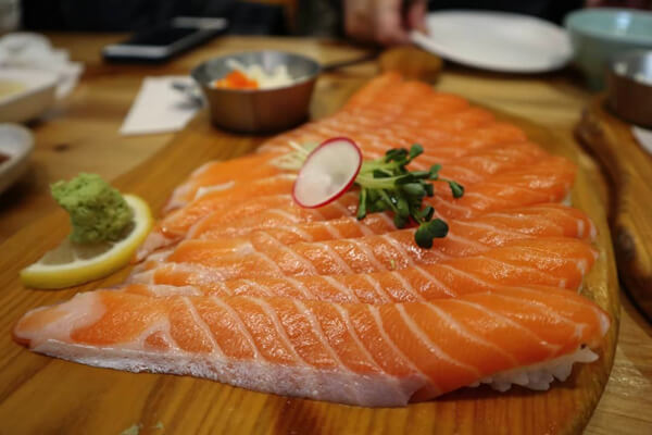 이 집이 유명한 이유는 바로 신선한 연어를 하루 딱 3마리만 한정으로 선보이는 점이다. 매일 아침 수산시장에서 직배송 받은 싱싱한 연어를 일~목 3마리, 금~토 5마리로 오직 준비된 재료로만 정성을 쏟아부으며, 전부 소진하면 조기 마감한다. 판매량이 정해진 규칙이 있는 만큼 연어가 먹음직스럽고 살살 녹는 맛이 일품이다. 이 집의 대표적인 메뉴는 다양한 연어의 맛과 식감을 즐길 수 있는 연어 한 판이 있다. 연어사시미를 기본으로 연어 콥샐러드, 부르게스타, 연어가마구이, 왕새우 튀김, 연어 꼬치까지 한상 제대로 차려져 나온다.