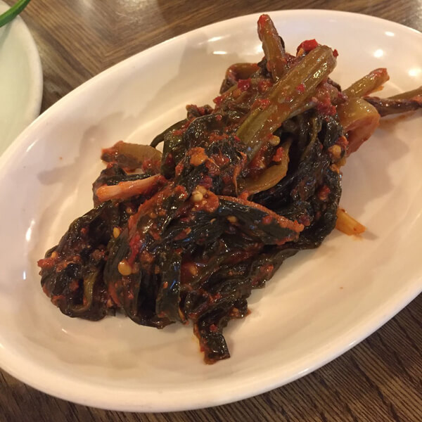 ‘고갯마루집’은 역삼역 인근 직장인들 사이에서 소문난 맛집으로 손꼽힌다. 늘 사람들로 북적이는 전형적인 원조 맛집의 느낌이다. 일반 가정집을 개조해 만들어 마치 집에서 먹는 것처럼 편안하고, 넓은 거실에 옹기종기 모여 앉아 있는 모습에 정겨운 분위기를 느낄 수 있다. 자리에 앉으면 총각김치와 갓김치, 생양파, 고추, 집된장이 기본으로 세팅된다. 특히 특유의 쌉쌀한 맛과 씹을수록 톡 터지는 청량감 그리고 아삭한 식감이 일품이 갓김치는 이 집의 숨겨진 별미다.