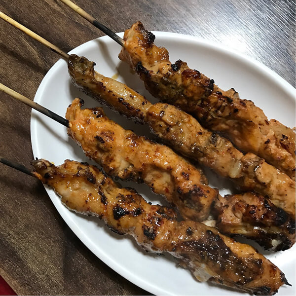 호수집의 또 다른 슈퍼스타 연탄 닭꼬치. 수많은 사람들의 인생닭꼬치라 불리는 호수집의 닭꼬치는 뼈까지 통째로 끼워낸 것이 특징이다. 자체 개발한 특제 소스에 발라 연탄불에 직화로 굽는다. 두툼한 닭꼬치는 오랜 시간 정성껏 구워내기 때문에 부드러우면서도 불맛 가득한 꼬치를 즐길 수 있다. 특히 식욕을 돋우는 화끈한 불맛과 오도독 씹히는 뼈의 식감이 은근 별미다. 오전에 준비해 저녁에만 판매하는 닭꼬치는 워낙 인기가 많아 한 사람당 2개씩만 판다.