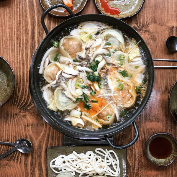 신선한 돼지고기에 8가지 야채를 혼합하여 매일 만두소를 만들고 정성껏 빚어 당일 만든 만두를 판매하는 것이 원칙인 맛집 수담. 수담은 손으로 빚어 얇고 큰 모양이 특징인 만두를 뜻하는 말로 실제 판매되고 있는 만두 역시 일반적인 만두와는 조금 다른 생김새를 보인다. 큼지막한 만두를 살포시 덮고 있는 얇은 만두피는 보기만 해도 군침이 절로 흐르는 비주얼을 자랑한다. 얼큰한 국물은 먹어도 먹어도 질리지 않는 맛으로 두툼한 수담만두의 감칠맛을 두 배로 끌어 올려준다. 전골을 다 먹은 뒤 추가로 먹는 볶음밥 역시 수담만의 별미. 뜨끈한 국물이 생각날 때 찾아가면 좋은 맛집이다.