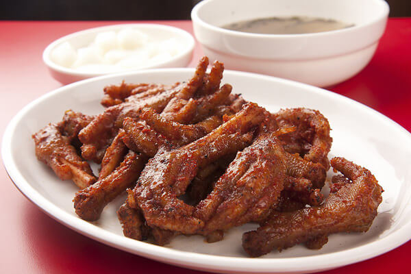 수많은 마니아층을 보유하고 있는 닭발. 요즘 닭발은 국물이 자작한 닭발에서 콩나물을 올리고, 포슬포슬한 달걀찜과 동그랗게 만든 주먹밥을 곁들여야 진정 닭발을 즐겼다고 말한다. 하지만 가끔은 매콤한 양념에 발라 석쇠에서 구운 포장마차 닭발이 그리울 때가 있다. 불향이 은은하게 배어 꼬들꼬들한 닭발을 먹다 보면 술이 절로 들어간다.