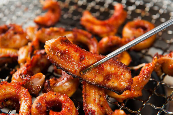 곰장어는 뿜어내는 점액 때문에 회나 탕으로 먹기보다는, 담백하게 구워 먹거나 산 채로 고추장 양념을 바라 구워 먹는 것이 더욱 맛있다. 살이 오동통하게 오른 곰장어에 불 맛이 더해져 꿈틀꿈틀 맛있게 익어가는 모습을 보고 있으면 나도 모르게 침이 고인다. 석쇠에서 구워주는 곳도 있지만, 졸인 포장마차 곰장어에 한번 반하면 절대 헤어 나올 수 없다. 양념에 오랜 시간 졸였기 때문에 양념이 잘 배어 있어 따른 소스 없이도 간이 잘 맞는다.