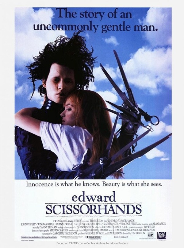 1990년대에 개봉된 가위손, 벌써 고전 영화가 되어 버렸다. 팀 버튼이 만들어낸 아름답지만 가슴 아픈 동화. 조니뎁의 엉뚱하면서도 애틋한 감정연기로 영화 몰입도는 여전히 최고다. 괴짜 발명가에 의해 태어났지만 미완성 상태인 인조인간 에드워드는 남들과는 다른 외모로 평범하지 못한 삶을 살지만 그 역시 사랑을 꿈꾼다. 에드워드가 가위로 얼음조각을 만들어 눈처럼 흩뿌리는 장면은 환호가 나올 정도로 아름답지만 그의 슬픈 표정이 대조되며 그 아름다운 장면도 가슴 아프게 만들어 버린다.