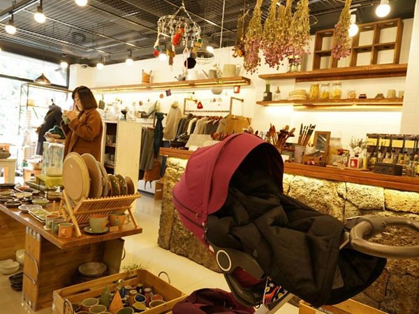 매장 안은 작지만 생활 소품들이 가득 채워져 있는 제주도 소품숍 ‘시간의 무늬’에는 찻잔과 와인잔, 액자, 엽서 등의 빈티지하면서도 유니크한 소품들이 있으며, 인테리어에 활용하기 좋은 양초와 조개껍질 모양의 도자 접시 등 다양한 상품들이 소비자들의 지갑을 열게 만든다.