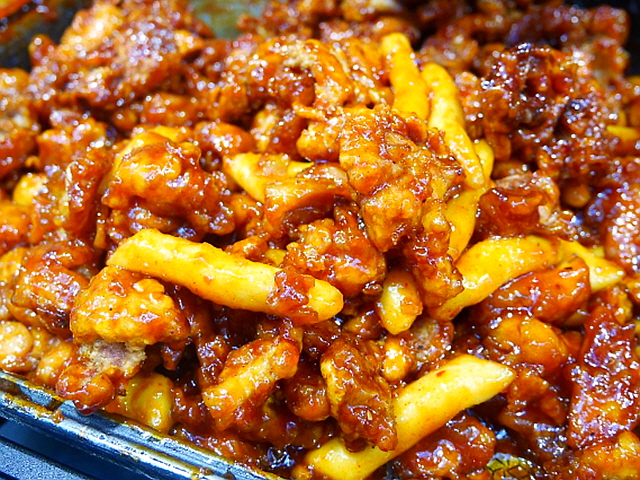 매콤달콤한 양념에 버무려진 닭강정을 보고도 그냥 지나칠 수 없는 법. 학창시절 학교 앞에서 즐겨 먹던 닭강정을 떠올리게 하는 추억의 맛이다. 가격도 그때 그 가격 그대로 엽전 2냥 1,000원이다.