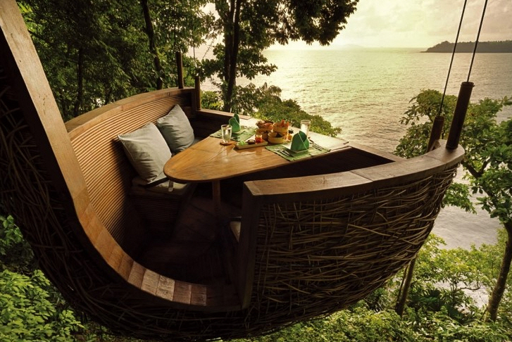 열대 정글에서 아늑한 식사를 즐길 수 있는 ‘트리포드 다이닝’. 태국 꼬쿳에 위치한 소네바 키리 리조트에서 운영하는 6가지 테마의 레스토랑 중 하나로, 마치 코코넛 모습을 띠는 바구니 형태의 좌석이 준비되어 있다. 이 레스토랑의 가장 큰 매력은 탁 트인 오션뷰. 시원한 코쿳의 오션뷰를 자랑하며 울창한 정글 시원한 폭포가 떨어지는 계곡 등 다양한 볼거리를 제공한다. 또한, 절벽 위에 자리해 있어 저녁에는 석양을 바라보면 낭만적인 식사를 즐길 수 있다.