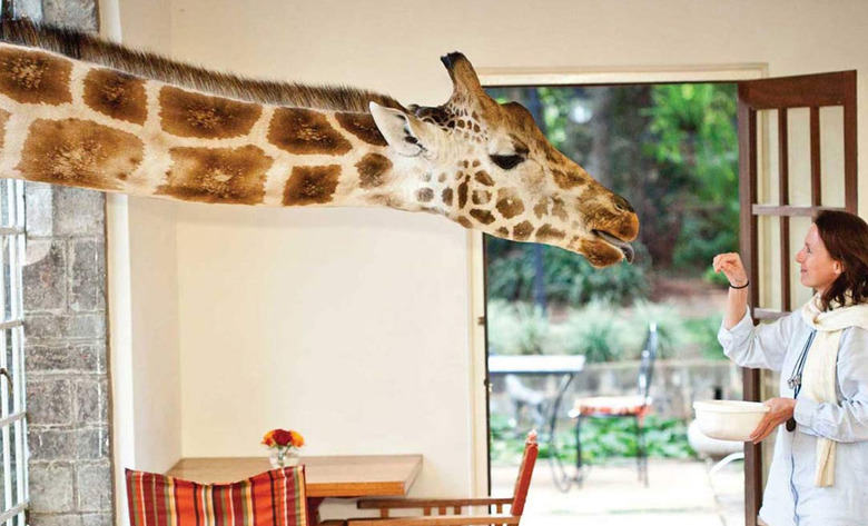 아침에 기린이 문안 인사를 한다면 믿겠는가? 놀랍게도 실제로 그런 곳이 존재한다. 케냐 나이로비에 위치한 '기린 호텔'에서 제공하는 서비스로, 이 호텔은 멸종 위기에 놓인 야생동물 보호구역 안에 위치해 있어 앞마당에 자유롭게 기린이 돌아다니는 모습을 볼 수 있다. 모든 룸은 기린 얼굴이 들어 올 수 있도록 창문이 제작되어 있으며, 매일 아침 9시가 되면 아침밥을 기다리는 기린의 모습을 만날 수 있다. 1박에 약 130만원에 달하는 비싼 가격임에도 불구하고 꾸준히 찾는 사람들이 늘고 있다고 한다.