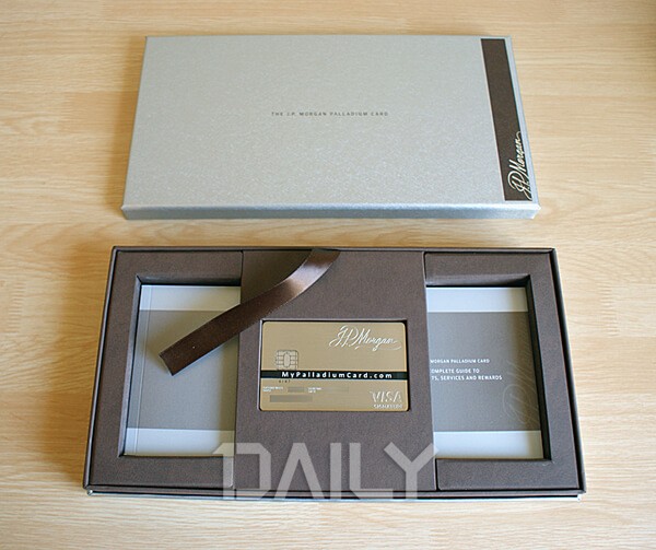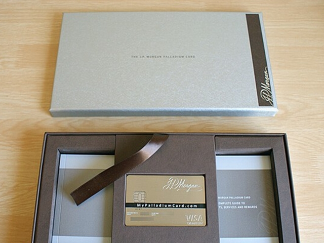 JP모건 체이스 팔라디움은 백금으로 제작되어 있으며 소유자의 이름이 레이저로 새겨진다. 세계적으로 유명한 금융기업인 JP모건 체이스가 최고 자산가들을 위해 만든 이 신용카드는, 만드는 데에 약 1,000달러가 들며 명품을 구매하거나 여행을 계획할 때 담당자가 기획안을 제공해준다.