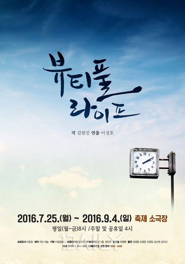 연극 '뷰티풀 라이프'는 총 3막으로 구성된 극을 통해 여느 노부부의 인생을 시간의 역순으로 보여줌으로써 진정한 사랑의 가치가 어떻게 변해왔는지 보여주는 작품이다. 춘식, 순옥 역을 맡은 배우가 여러가지 역을 소화하는 2인극으로, 넘치지도, 모자라지도 않는 잔잔하고 따뜻한 이야기를 전해준다.