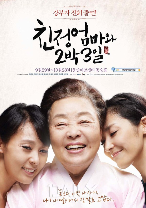연극 '친정엄마와 2박 3일'은 혼자 잘나서 잘 사는 줄 알던 깍쟁이 딸 미영과 딸을 낳은 것이 살면서 가장 보람 있는 일이었다는 친정엄마가 시한부 미영의 죽음을 앞두고 보내는 가슴 뭉클한 2박 3일을 그린다. 엄마와의 슬픈 이별 준비로 가슴을 울리는 '친정엄마와 2박 3일'은 2009년 1월 초연 이래 700회 이상의 공연횟수를 기록하고 있다.