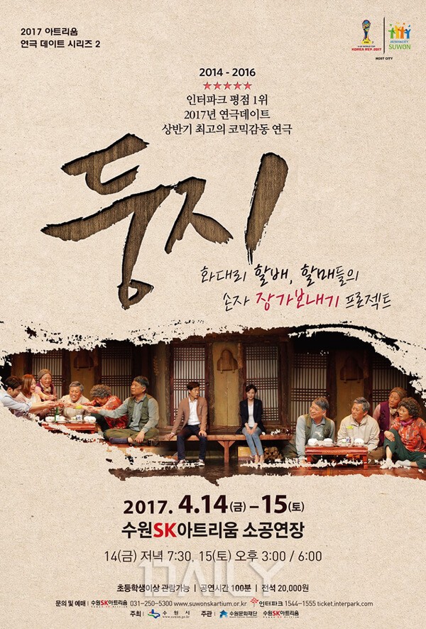 평범한 일상을 지탱해주는 소중한 존재인 가족에게 집중한 연극 '둥지'는 사랑하는 손자가 장기간 해외 파견을 나간다는 소식에, 가슴이 철렁 내려앉은 조부모들이 '손주장가 보내기 프로젝트'를 벌이는 이야기를 다룬다. 70대 조부모와 30대 초반 손자의 이야기를 통해 진정한 가족의 의미를 되새겨 보는 작품.