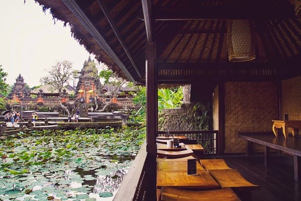 휴양지에 있는 스타벅스는 어떤 모습을 하고 있을까? 입구부터 독특한 외관을 자랑한다. 초록색 로고는 찾아볼 수 없고 목판에 새겨진 듯 발리스러운 컬러감의 로고와 글씨가 새겨진 징이 손님들을 맞이하고 있다. 우붓의 스타벅스의 묘미는 바로 안쪽에 있는 사라스와티 사원. 그리고 연 잎으로 가득 메워진 연못이 장관이다. 해질녘 즈음이면 공연도 한다고 하니 더위가 한층 식었을 때 시원한 커피 한 잔과 공연을 즐겨도 좋을 듯하다.