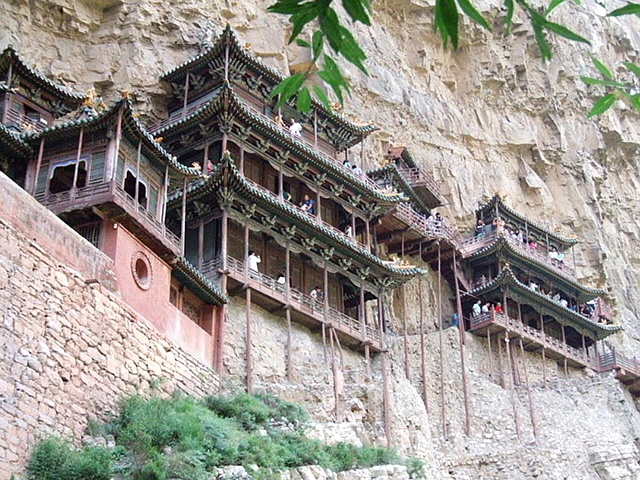 ‘하늘에 걸려 있는 사찰’이라는 뜻의 현공사(쉬안쿵사)는 1,400년 전에 지어진 건축물로, 당시 흉노족의 침입을 막기 위해 만들어졌다. 낭떠러지 암벽을 겨우 파고 들어가 만든 건축물이라 폭이 5m를 넘지 않지만 사찰이 갖추어야 할 것들은 모두 갖추고 있다고 한다. 아슬아슬해 보이는 현공사(쉬안쿵사)는 칸 수가 40개에 달하는 3층 건물이다.