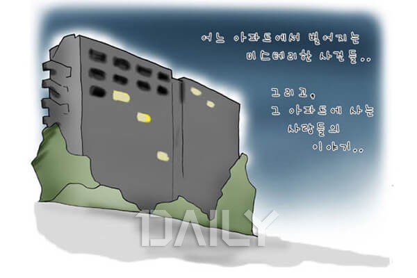 유명 웹툰 작가 강풀이 그린 공포물 '아파트'는 제목 그대로 아파트를 주제로 한 작품이다. 이야기는 한 여자의 한으로 인해 아파트에서 사람들이 죽어 나가는 사건을 중심으로 전개된다. 현재 완결되었으나, 연재 당시 많은 인기를 얻어 영화로도 제작되어 고소영이 주연을 맡기도 했다.