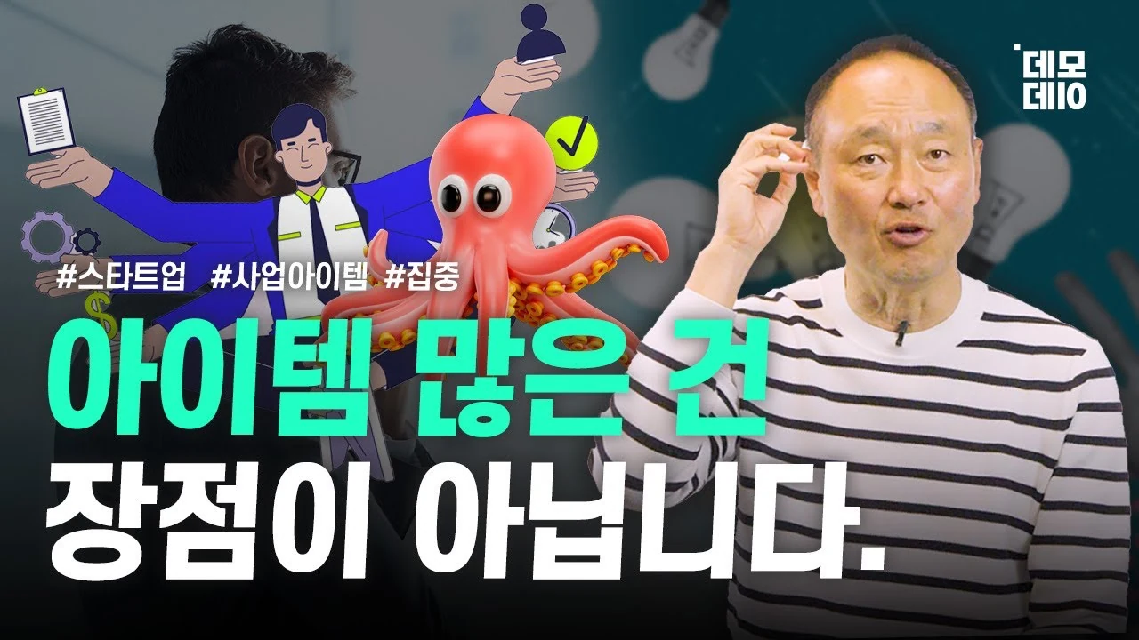안녕하세요 데모데이 김범수입니다. 스타트업 대표님들을 만나다 보면 아이템을 여러 개 가져오시는 경우가 있습니다. 하나만 하기엔 불안해서, 혹은 시장이 작아 보여서 이것저것 덧붙이는 거죠. 결론부터 말씀드리면, 초기 스타트업이 여러 아이템을 동시에 진행하는 것은 절대 권장하지 않습니다. 펀딩에도 전혀 도움이 되지 않습니다. 이게 왜 그러냐 하면은, 스타트업이 가진 본질적인 한계와 투자자들의 냉정한 시장 논리가 있기 때문입니다. 오늘 영상에서는 여러 아이템을 고민하실 때 반드시 짚어봐야 할 현실적인 팩트를 전달해 드리겠습니다.