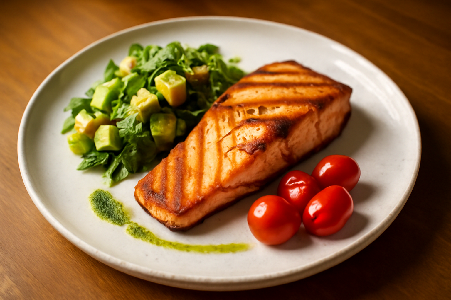 연어는 고품질 단백질과 오메가3가 풍부해서 정말 좋은 식재료예요! 구운 연어에 아보카도, 방울토마토, 견과류를 올려주면 완성 ✨