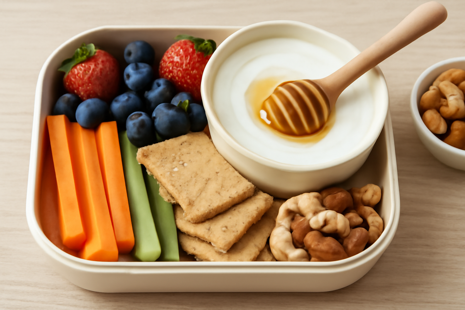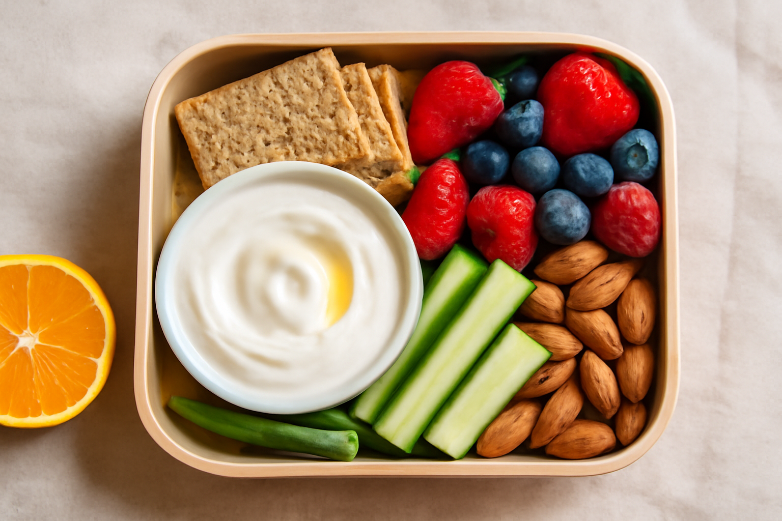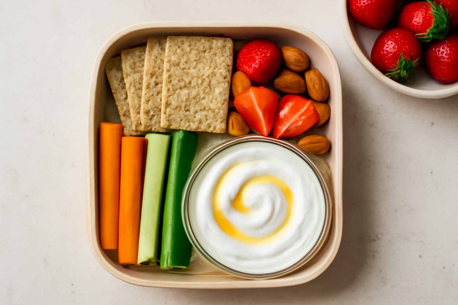 가장 간단하면서도 활용도가 높은 방법은 그릭요거트를 디핑 소스로 활용하는 거예요. 작은 용기에 그릭요거트를 담고, 꿀이나 메이플 시럽을 조금 넣어 달콤함을 더해주세요. 여기에 계절 과일, 견과류, 통곡물 크래커를 함께 도시락에 담아가면 완벽한 한 끼가 완성돼요.