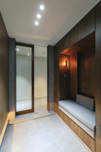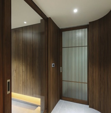 - 전용 출입문 (월넛 간살 슬라이딩 도어)