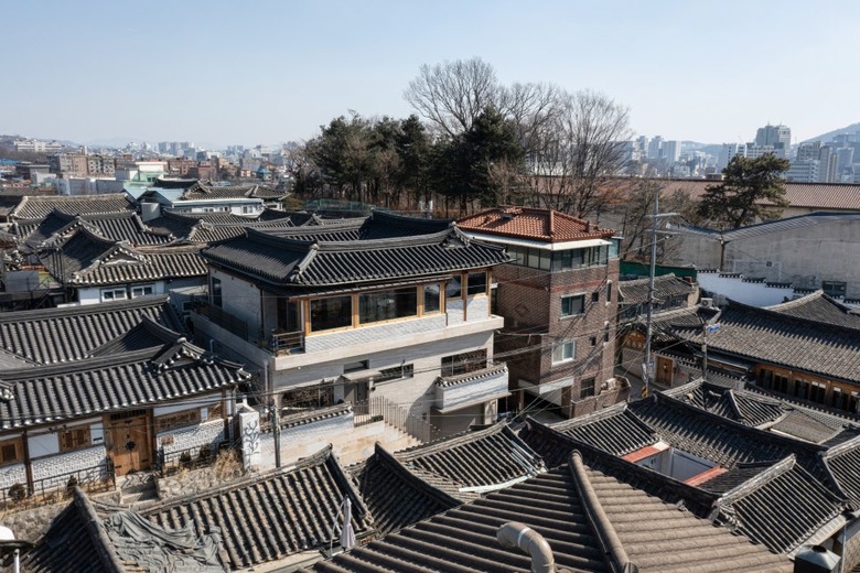 여기에 한옥 전통 개념 중 하나인 차경(借景)을 적극적으로 적용했다. 덕분에 1~2층에 복원된 중정부터 실내 공간 어디에서나 허투루 버려지는 부분 없이 내외부 공간이 연결되는 모습을 만날 수 있다.