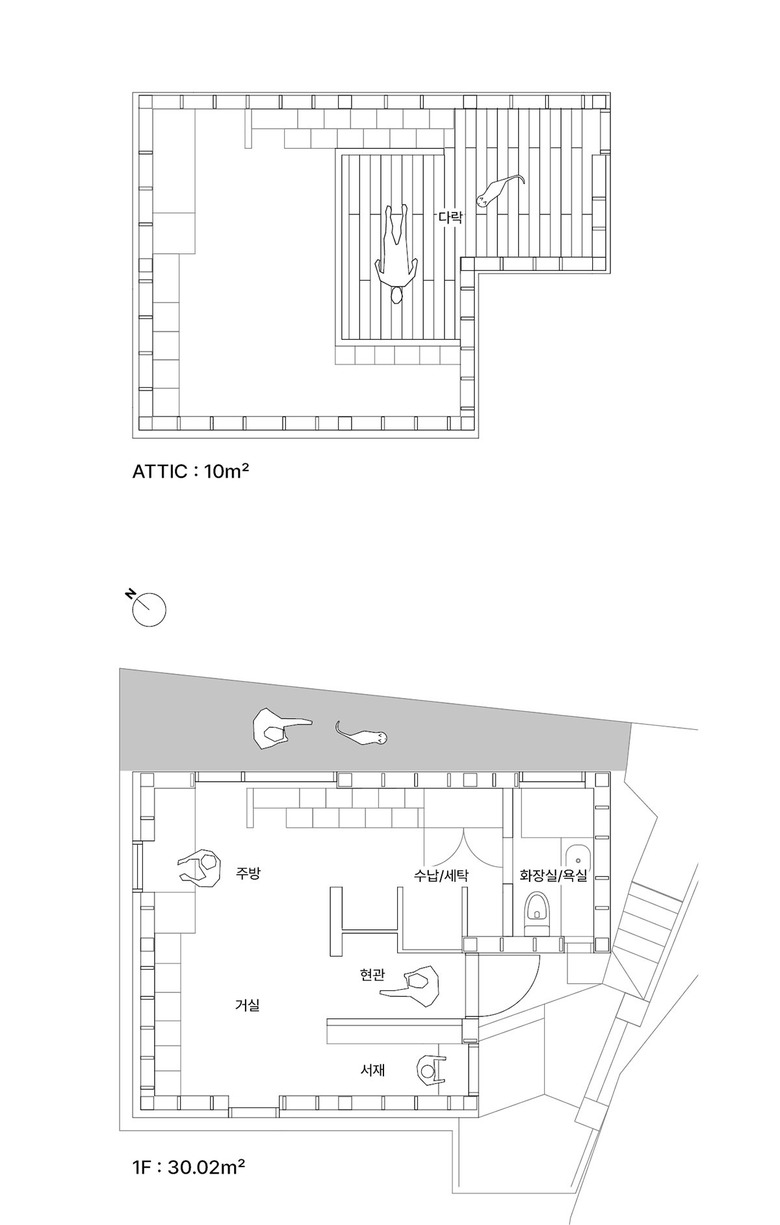 건물규모 : 지상 1층, 다락 거주인원 : 1명+반려묘 3마리