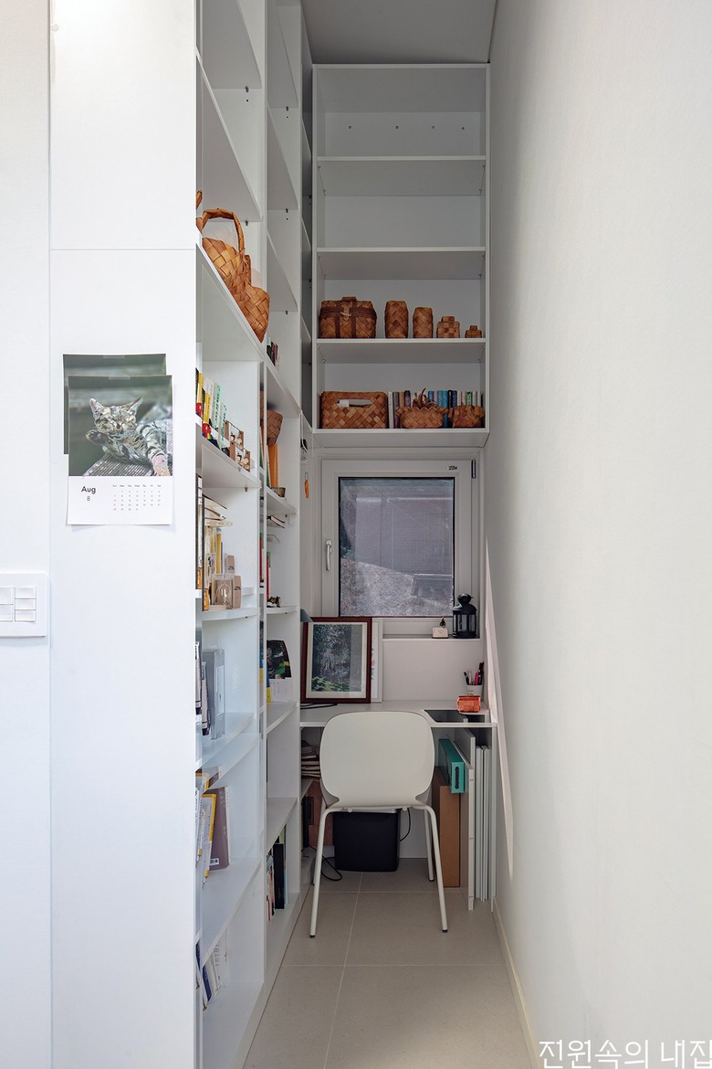 ![]() 현관 쪽 거실 끝에는 독립된 서재 공간이 마련되어 있다. |