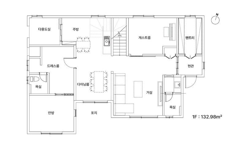 부부는 첫 번째 집에 이어 다시 한번 ‘로드하우징’과 프로젝트를 진행했다. 담당 현장 소장님과 소통하며 도움을 받았던 경험이 너무 만족스러워 고민 없이 선택했다고 한다. 두 번째인 만큼 부부는 원하는 것과 보완하고 싶은 점들이 명확했다. 아내는 밤낮으로 공부하며 직접 설계를 구상했다. 실용성과 남향의 숲뷰를 최고 우선순위로 두었으며, 아이들이 있는 집의 수고를 덜 수 있도록 세부 요소들을 적용했다.