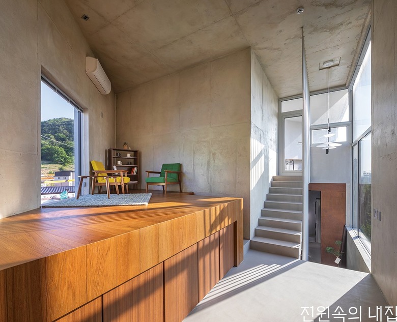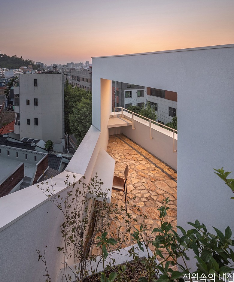 집은 크게 음식을 매개로 주변 지인들과 소통할 수 있는 1층 다이닝-키친 공간, 완연한 주거의 기능을 구현하는 2~4층 공간, 주변의 자연환경과 적극적으로 교감할 수 있는 옥상 공간으로 3개의 층위를 지니게 되었다.