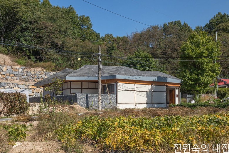 기존 집은 긴 세월을 보낸 오래된 농가인지라 유독 질서가 없을 정도로 구조가 어수선했다. 지붕 구조틀 아래 평천장은 시멘트와 흙벽, 두 겹으로 시공돼 기둥을 무겁게 짓누르고 있었다. 외부의 흙벽 역시 기울어 있어 구조용 파이프로 고정해가며 철거했지만, 일부가 무너지기도 했다. 조선시대의 양식을 따르는 일반적인 한옥은 아니었고, 소나무를 얼기설기 쌓아 만든 집이었다. 목재가 삐뚤빼뚤하고 흙벽도 여기저기 배가 불러 있었지만, 편안하면서도 독보적인 분위기를 풍겨 그냥 허물기에는 아까운 집이었다.